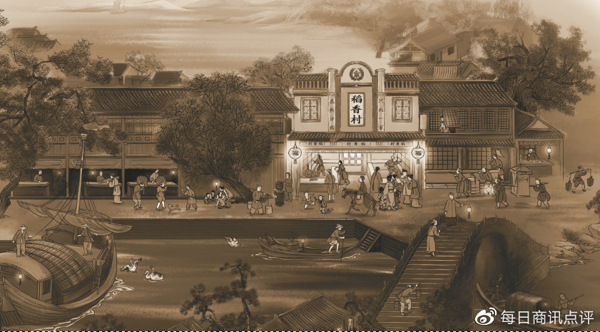 乾隆皇帝的吃货之心使得苏州稻香村在清中期便声名远扬,而当时的历史环境也使得苏州稻香村的影响力持续扩张。依托京杭大运河的水运之便,苏州建立了四通八达的水陆交通网,交通的便利吸引了全国商人的瞩目,来自各地的商帮大都在苏州落脚、发展。这些商帮在利用运河便利进行经商的同时,也将苏州的特产带到全国,作为糕点界的金字招牌,苏州稻香村自然是其中的“抢手货”,这给“稻香村”品牌影响力的扩张带来了极大便利。