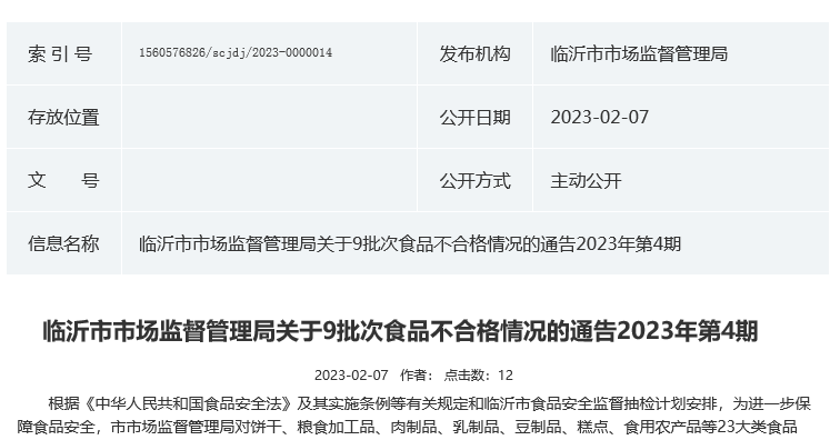 中国质量新闻网讯 据山东省临沂市市场监督管理局2023年2月7日发布的通告,该局对23大类食品500批次样品进行了监督抽检。其中,抽检糖果制品1批次,合格1批次。
