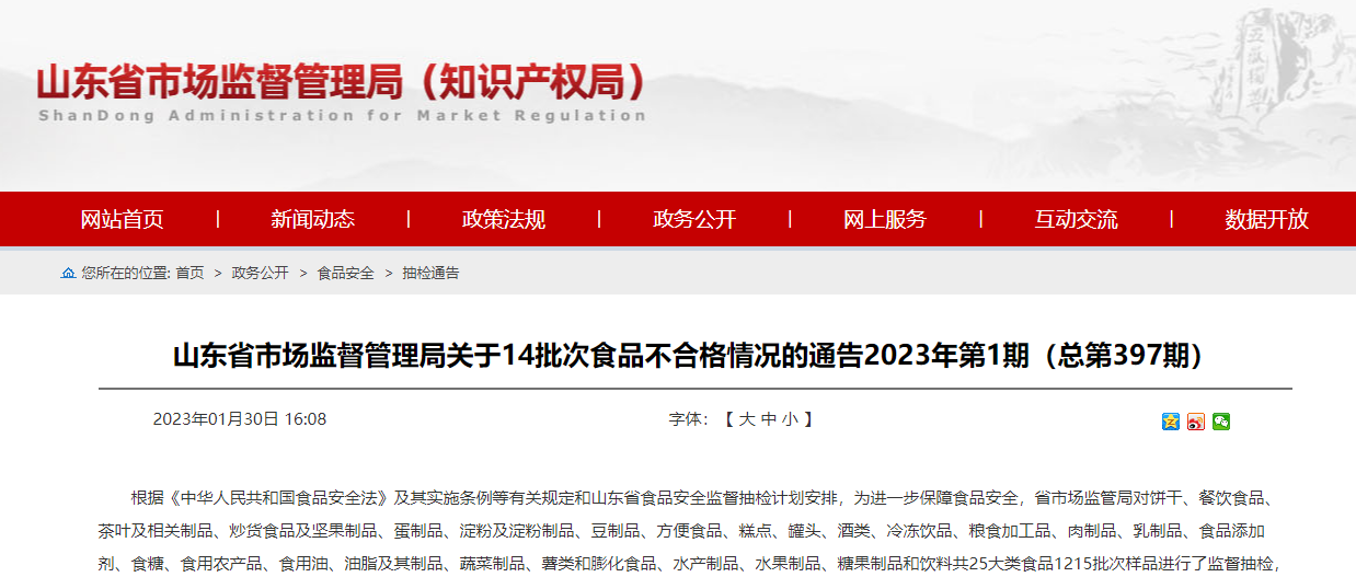 中国质量新闻网讯 据山东省市场监督管理局网站2023年1月30日发布的通告,该局对25大类食品1215批次样品进行了监督抽检。其中,抽检牛轧糖等糖果制品22批次,全部合格。